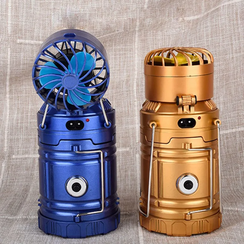 Outdoor Camping Lantern With Fan LED Solar Powered Portable Hanging Tent Emergency Lamp Lighting Ou