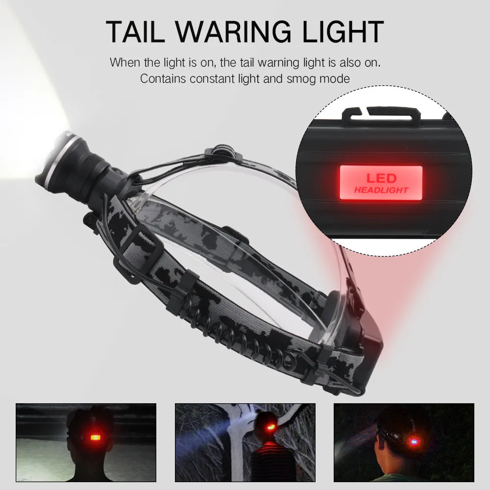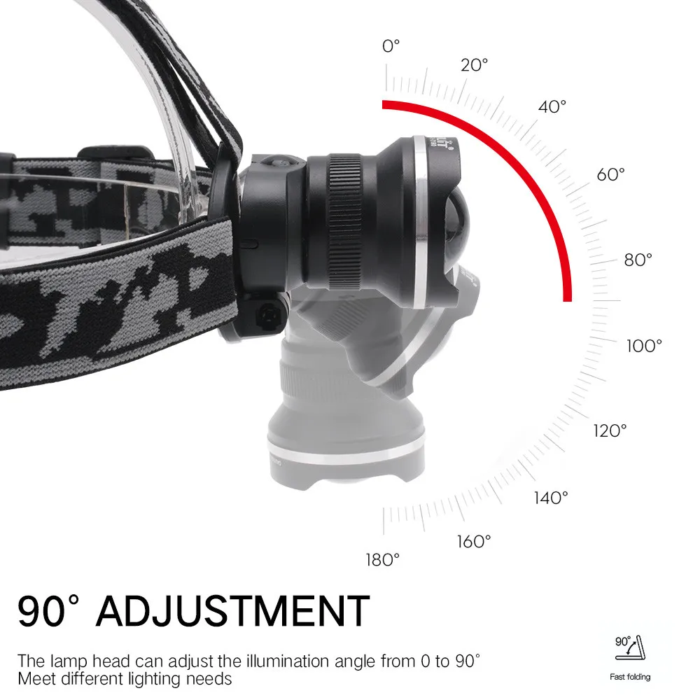 BORUiT RJ-2190 XML T6 LED Headlamp 3-Mode Zoom Headlight High Power 3000LM Head Torch 18650 Recharg