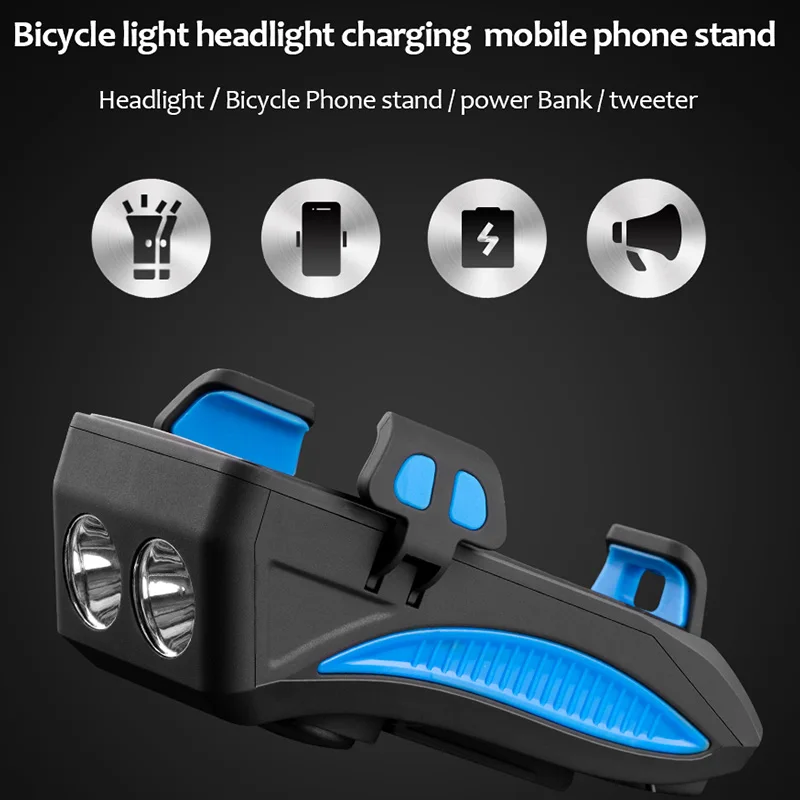TOP!-Bike Light Usb Rechargeable Flashlight Phone Holder Bicycle Highlight 4000Mah Power Bank Cycli